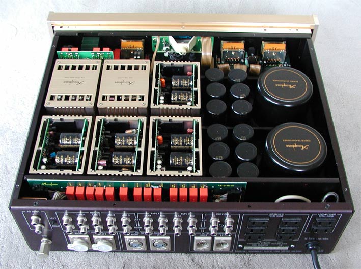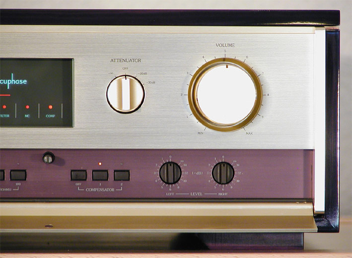 Accuphase C-280L C280L C 280 L C 280L Accuphase C-280L eine wahrlich triumphale Vorstufe, kaum eine andere Accuphase Vorstufe hat neben der C-280L oder V ein derartig gutes Image und ist deshalb auch so dermassen begehrt. Sie glänzt mit einer hervorragenden Phono MM + MC Sektion ist auch im Hochpegel Segment sehr erfrischend, dynamisch, luftig und lebendig. Auf den Bildern kann man sehen wie viel Aufwand den jeweiligen Baugruppen gewidmet wurde, alles ist gekapselt und abgeschirmt, selbst die Trafos findet man in dieser Grösse nicht unbedingt in jedem Vollverstärker und wir reden hier nur von einer Vorstufe, die Klemmen aus speziellen hoch leitenden Legierungen. Ein Traum in Klang, Design und Verarbeitung. Gebrauchtpreise liegen für eine C-280L zwischen 1.900,- und 2.200,- Euro. Für eine C-280V zwischen 2.700,- und 3.200,- Euro. Die C-280 gibts zwischen 1.200 und 1.500,- Euro. Von umgebauten oder verbastelten Geräten sollte man abstand nehmen, informieren Sie sich ob das Gerät bereits einmal repariert wurde und von wem die Rep. ausgeführt wurde. Geräte die getunt wurden, ob nun im Signalweg oder am Netzkabel / Kaltgeräte Buchse usw.. sollten nicht gleich Blauäugig gekauft werden, da diese später, beim Wiederverkauf deutlich geringere Preise bringen bzw. für Accupahse Fans, die meist wert auf den Orginalzustand legen uninteressant werden.