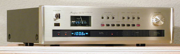 Accuphase T-105 Accuphase T-105 Tuner, günstiger Einstiegstuner schon damals, der T-105 bietet Accuphase Verarbeitung mit Accuphase Typischem Klang und das zum kleinen Preis. Der ehemalige Neupreis lag 1980 bei ca. 2.000,- DM. Der Tuner bietet ein Multi Anzeige Instrument für Signalstärke, Multipath und Modulation. Muting, Filter und Mono/Stereo schaltbar, Normal und Narrow Umschaltung. Output Level Regler und 6 Festspeicher. Sollten Sie sich für ein gebrauchtes Gerät interessieren müssen Sie ca. 300,- bis 400,- Euro rechnen. Auf eines sollte man aber unbedingt achten, der Speichererhaltungsakku sollte auf jeden Fall gewechselt sein oder werden. Sollte man das außer acht lassen und der Akku läuft aus, kann man das Gerät in den Sperrmüll entsorgen. Also ein Tip an all diejenigen die noch den alten Akku verwenden, sofort zur PIA schicken und tauschen lassen bevor es zu spät ist.