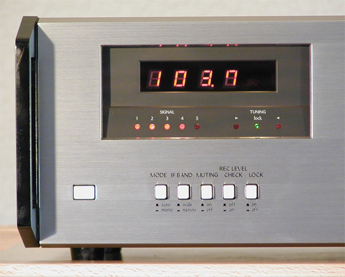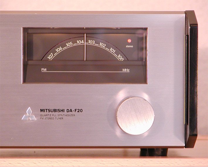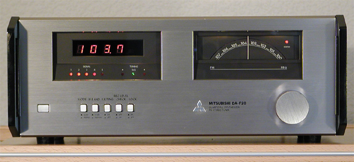 MITSUBISHI DA-F 20, Der Mitsubishi DA-F 20 ist meiner Meinung nach ein besonders schöner und verkannter Tuner, er glänzt mit einer untypischen Skala bei der sich die Frequenzanzeige auf einer Scheibe befindet, zusätzlich gibt es eine gut lesbare Elektronische Anzeige, klanglich sehr schön. Zum Preis kann ich nichts sagen habe alle Mitsubishi Gerät in schmutzigem Zustand geschenkt bekommen.