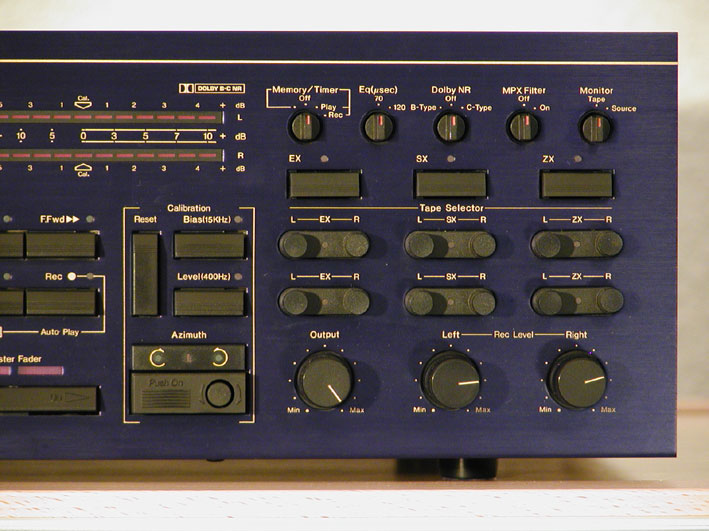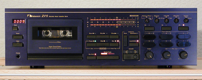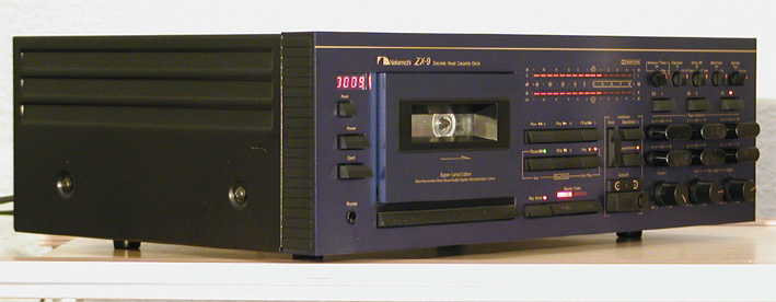 Ein wahrhaft tolles Deck mit reichlich interessanter und nützlicher Ausstattung. Das ZX-9 kommt dem Dragon, was Ausstattung und manuelle Einsatzmöglichkeiten angeht wohl am nächsten. Natürlich ist z.b. so ein CR-7E auch nicht zu verauchten. Zumindest wenn Sie zu der Fraktion, ich will schnellstmöglich die besten Aufnahme ergebnisse erzielen gehören. Wer aber schon mal einem Einmesscomputer, ohne manuelle Eingriffsmöglichkeit ausgesetzt war, der wird mit dem ZX-9 mehr als zufrieden sein. Die sicherlich gute Automatische Azimuth Calibrierung des Dragon ist schon schön. Die manuelle des ZX-9 ist sicher ebenbürtig. Danach geht wie beim Dragon voll manuell weiter, getrennte Regler für Rec. Level & Bias mit den dazugehörigen Calbriertönen 400Hz & 15KHz und das jeweils für den Rechten und Linken Kanal. Und das ganze jeweils für die Bandsorten Normal, Chrom Diox. u. Metall. Zudem kommen noch Abstufungen in den Umspulgeschwindigkeiten. Memory Funktion, Manuelle Eq. wahl, MPX-Filter und Dolby B & C dazu. Dieses Deck lässt wirklich keine Wünsche offen. Einer meiner Lieblinge.