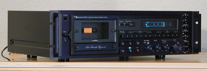Nakamichi 680-ZX, ein Referenz Deck der Superlative. Es bietet klangliche Spitzenleistung gepaart mit Zuverlässigkeit, Betriebssicherheit und Langlebigkeit. Die Besonderheit beim 680-ZX besteht darin, daß es zum feineinstellen der Bandgeschwindigkeit, diese auch noch um die hälfte reduzieren kann. Es kann also mit den üblichen 4,75cm pro Sek. sowie mit 2,875cm pro Sek. betrieben werden. So ist es Super geeignet für Sprachaufnahmen oder das Aufzeichnen von Hörspielen usw... Darüber hinaus ist es auf jede Cassette kalibrierbar, wobei es durch eine Automatische Azimuth Regelung unterstützt wird. Die BIAS Einstellung ist vorgegeben, paßt aber zu 95% zu allen gängigen Bandtypen. Der Equalizer ist zwischen 70/120 wählbar. Durch die manuelle Einstellung der Bandsorte kann man auch noch ins Klangbild eingreifen. Zusätzlich gibt es noch die Möglichkeit der Pegel Kalibrierung. Ein Rundum sehr gutes Deck.