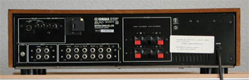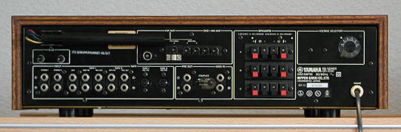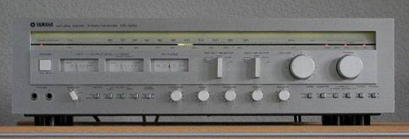 Yamaha CR-1020, mittelgrosser Reseiver mit 3 Lautsprecherpaaren. Seine Leistung liegt bei ca. 2 x 100 Watt an 8 Ohm. Eine Reichhaltige Ausstattung liefert er in form von Low Filtern 70 + 15 Hz. High Filtern 8 + 12 KHz. Klangregelung sind im Bereich von Bässen, Mitten, Höhen und einer Regelbaren Loudness möglich. Weitere Ausstattung Muting und Balance im Audio Bereich, sowie Muting/OTS, FM-Blend, FM/AM sowie eine Umschaltung von Signal und Ausgangsleistungs Instrumenten. Alle Kontakte von Reglern und Schaltern noch sehr gut. Als Eingänge sind Tuner, 2 x Phono, Aux und 2 x Tape schaltbar. Auch hier gibt es leider keine Bedienungsanleitung, vielleicht kann mir jemand weiterhelfen.