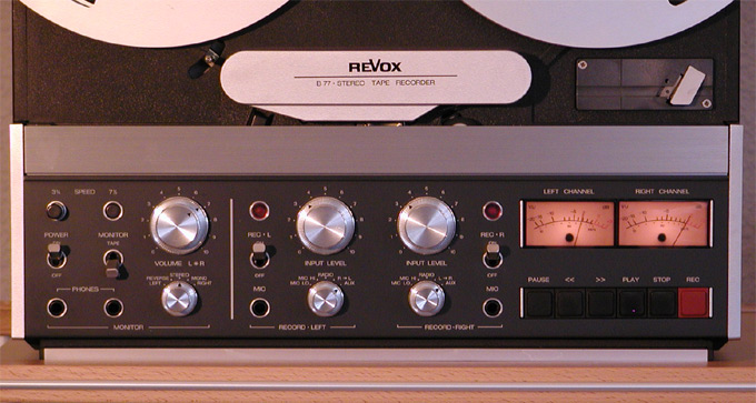 ReVox B-77 Die Revox B-77 oder B-77MKII gilt in den Kreisen der Tonbandfreunde als gute Maschine mit Fast Profi Qualitäten. Hier haben wir eine Zweispur Version mit zwei Geschwindigkeiten 9,5 und 19cm/sec. Also leider keine Studionorm von 38cm/sec. Dafür glänzt sie gerade im Home Bereich mit exzellenten Klangqualitäten, reich an Dynamik und Wiedergabequalität. Gekostet hatte Sie mich mal 30,- Euro dann noch mal ca. 90,- Euro für ein paar Ersatzteile und sie ist wieder auf technischem sowie mechanischem Neuzustand. Bei Fragen zum GEBRAUCHTKAUF klicken Sie einfach auf GEBRAUCHTKAUF TIP´S.